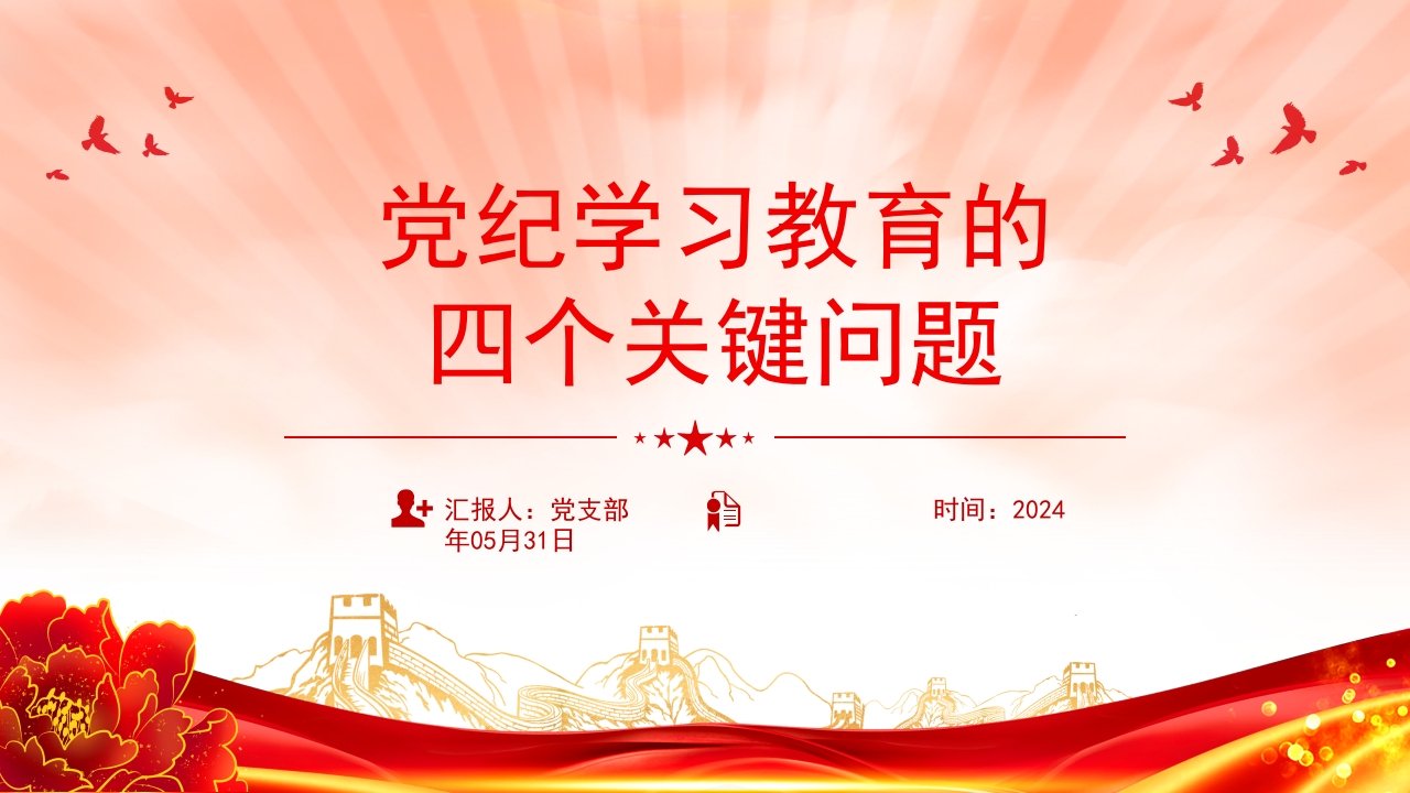 未生成预览图,搜索微信号:gwsucai 党的纪律建设专题党课:党纪学习教育的四个关键问题PPT - 笔杆子文案写作