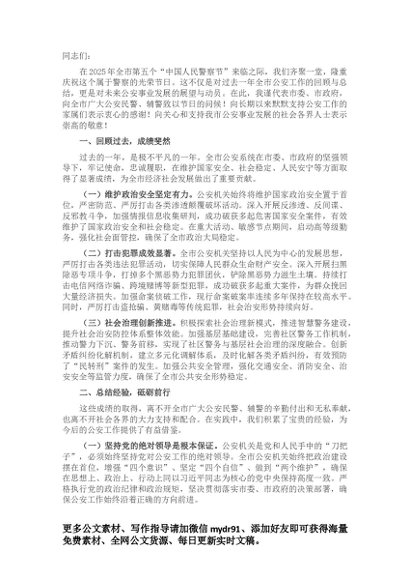 / 在全市第五个“中国人民警察节”庆祝大会上的讲话