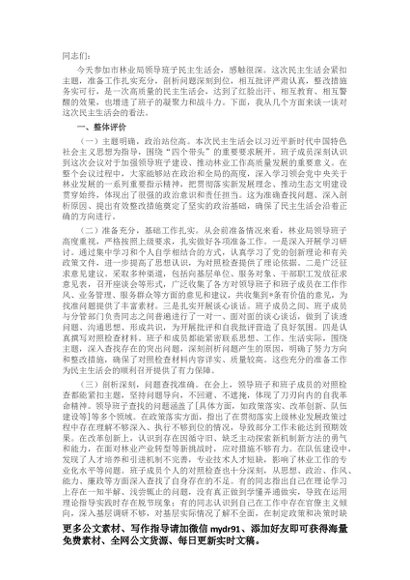 / 市委指导组组长在市林业局领导班子2024年专题民主生活会上的点评讲话