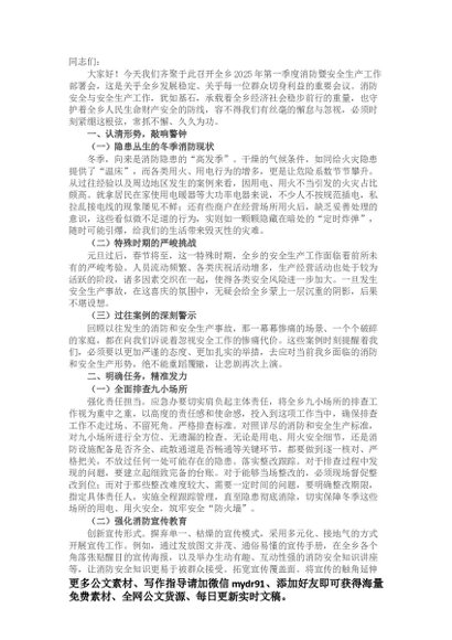 / 在全乡2025年第一季度消防暨安全生产工作部署会上的讲话