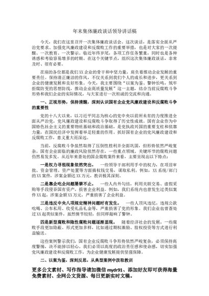 / 年末集体廉政谈话领导讲话稿