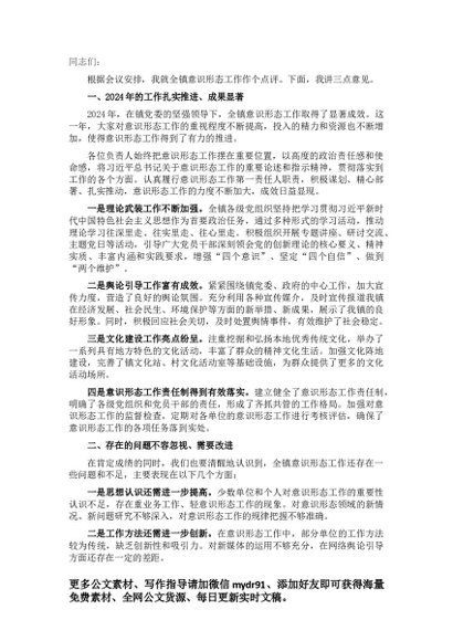 / 在全镇2024年度意识形态述职评议会上的点评讲话