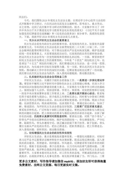 / 在2024年度民主生活会前集中学习研讨会上的总结讲话