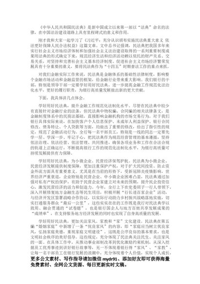 / 学好用好民法典 提升国有企业(银行)工作规范化法治化水平讲话