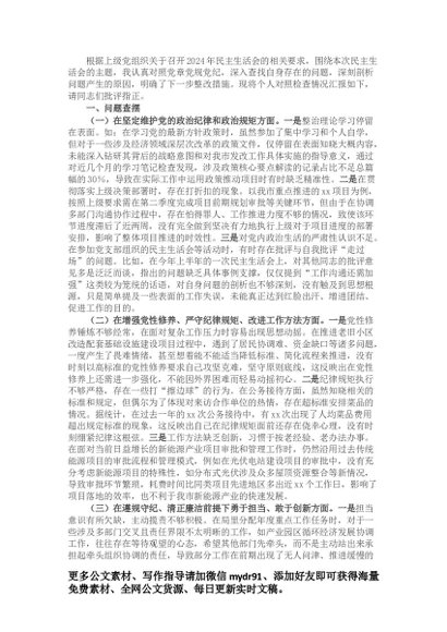 / 市发改局副局长2024年民主生活会对照检查发言材料
