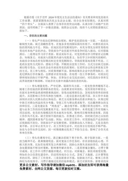 / 市直单位领导干部2024年专题民主生活会、组织生活会对照检查发言材料(四个带头)
