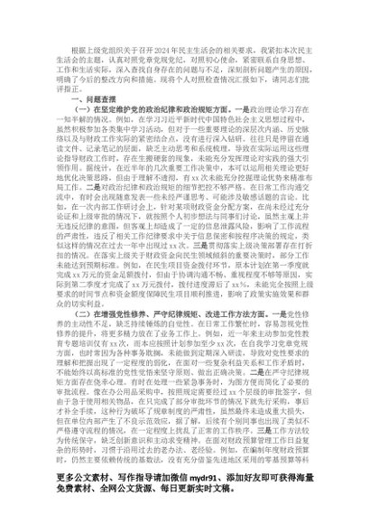 / 市财政局副局长2024年民主生活会对照检查发言材料