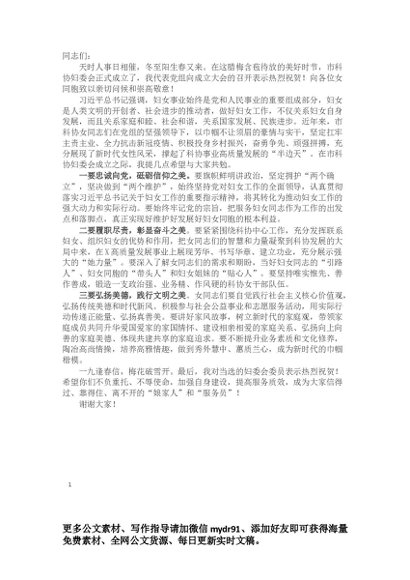 / 在市科协妇委会成立大会上的讲话