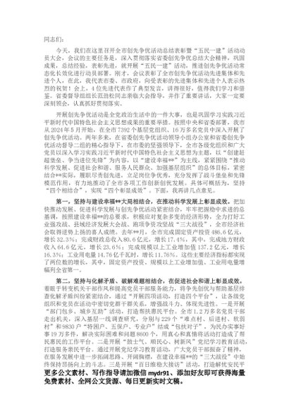 / 在2024年全市创先争优活动总结表彰大会上的讲话