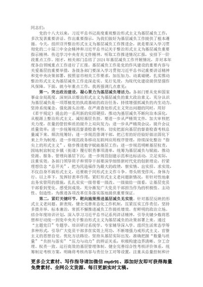 / 在整治形式主义为基层减负工作推进会上的讲话提纲