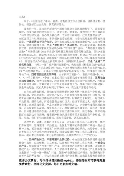 / 区委书记在传达学习贯彻中央、省委、市委经济工作会议精神会上的讲话