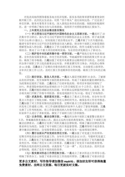 / 市发改局领导班子2024年民主生活会对照检查发言材料(四个带头)