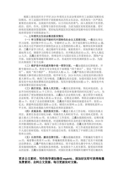 / 市工业园区领导班子2024年民主生活会对照检查发言材料(四个带头)