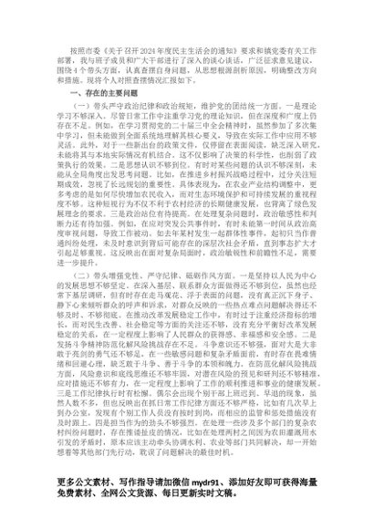 2024年专题民主生活会、组织生活会对照检查发言材料(围绕“四个带头”)