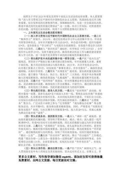 / 2024年民主生活会领导干部个人对照检查发言材料