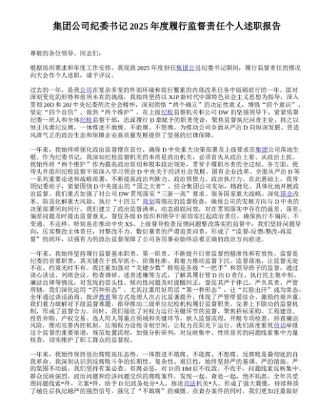 / 集团公司纪委书记2025年度履行监督责任个人述职报告