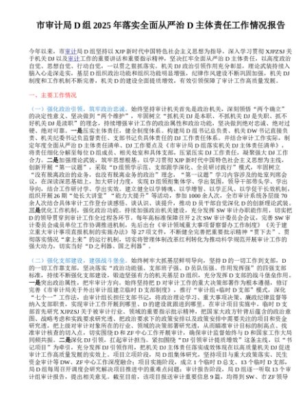 / 市审计局D组2025年落实全面从严治D主体责任工作情况报告