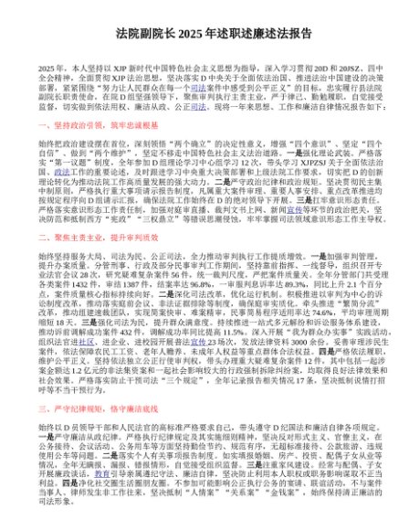 / 法院副院长2025年述职述廉述法报告