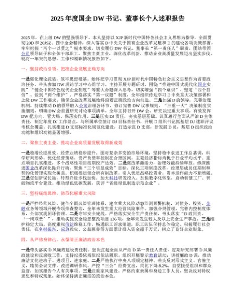 / 2025年度国企DW书记、董事长个人述职报告 (1)