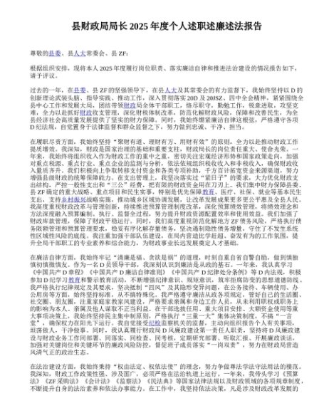 / 县财政局局长2025年度个人述职述廉述法报告