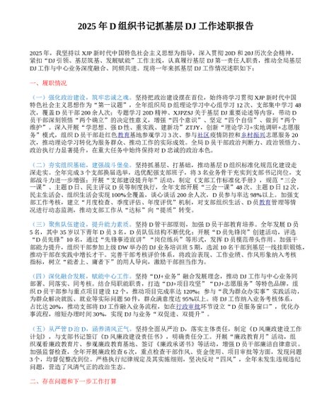 / 2025年D组织书记抓基层DJ工作述职报告