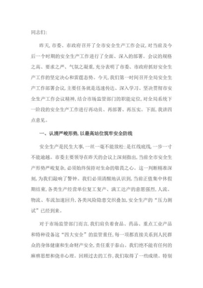 / 在2025年市场监管局安全生产工作会议上的讲话