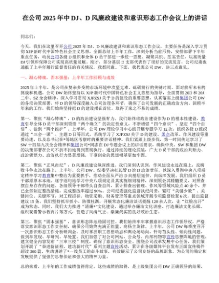 / 在公司2025年中DJ、D风廉政建设和意识形态工作会议上的讲话