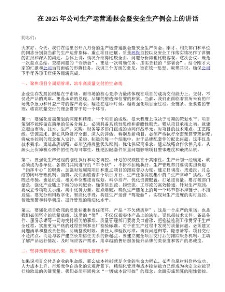 / 在2025年公司生产运营通报会暨安全生产例会上的讲话