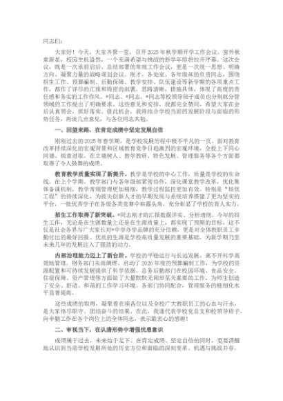 / 在中学2025年秋学期开学工作会议上的讲话