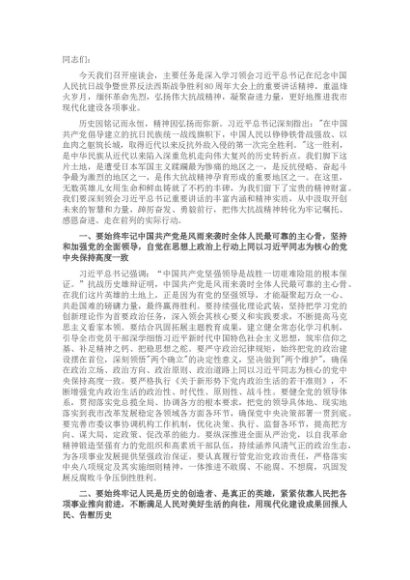 / 市委书记在全市学习贯彻习近平总书记在纪念中国人民抗日战争暨世界反法西斯战争胜利80周年大会上的重要讲话精神座谈会上的讲话