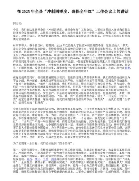 / 在2025年全县“冲刺四季度、确保全年红”工作会议上的讲话