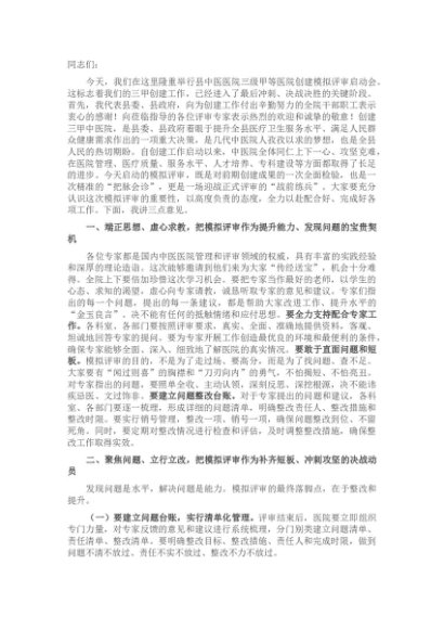 / 在2025年县中医医院三甲模拟评审启动会上的讲话
