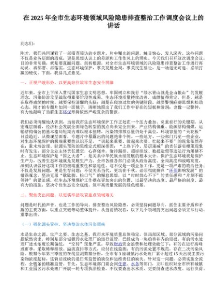 / 在2025年全市生态环境领域风险隐患排查整治工作调度会议上的讲话