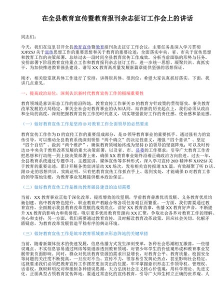 / 在全县教育宣传暨教育报刊杂志征订工作会上的讲话