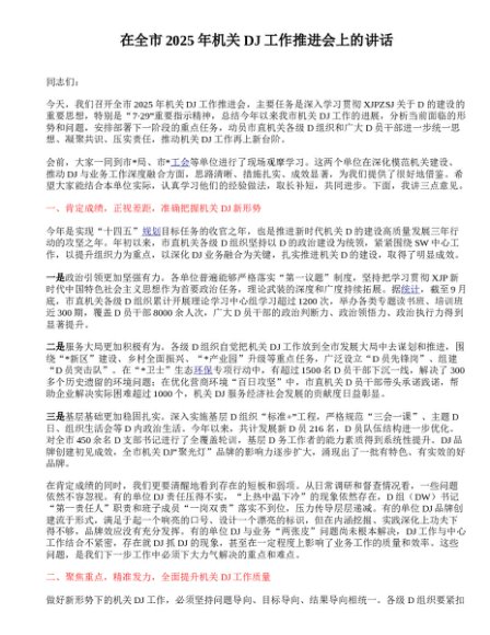 / 在全市2025年机关DJ工作推进会上的讲话