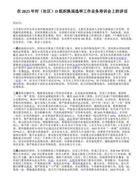 / 在2025年村(社区)D组织换届选举工作业务培训会上的讲话