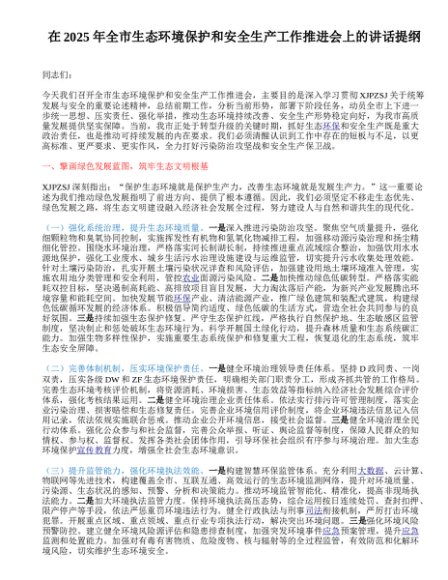 / 在2025年全市生态环境保护和安全生产工作推进会上的讲话提纲