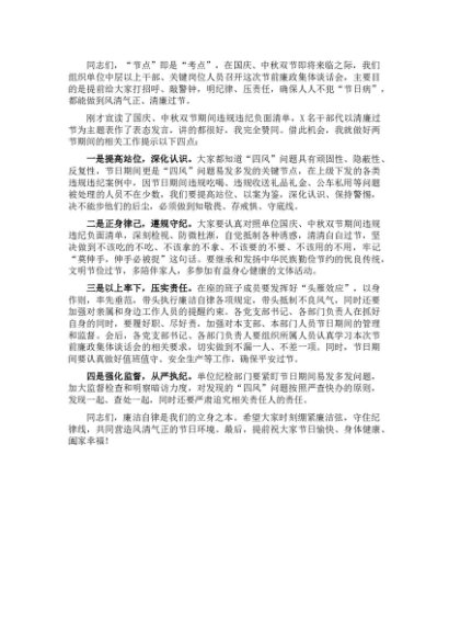 / 在2025年中秋国庆节前廉政谈话会上的简短讲话