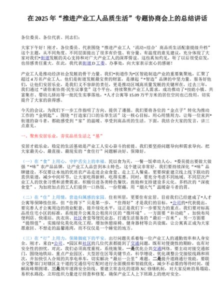 / 在2025年“推进产业工人品质生活”专题协商会上的总结讲话
