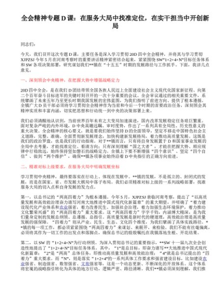 全会精神专题D课:在服务大局中找准定位,在实干担当中开创新局