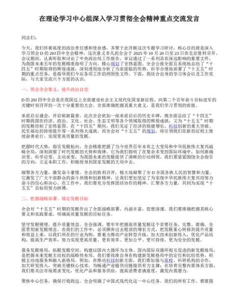 / 在理论学习中心组深入学习贯彻全会精神重点交流发言
