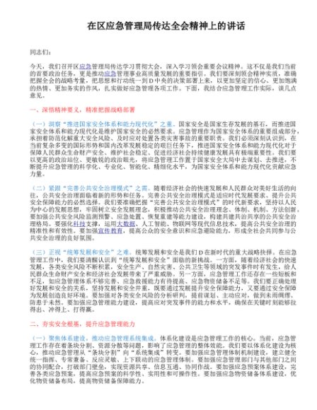 / 在区应急管理局传达全会精神上的讲话