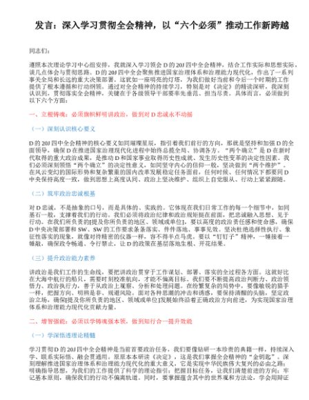 / 发言:深入学习贯彻全会精神,以“六个必须”推动工作新跨越