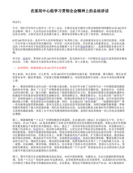 / 在某局中心组学习贯彻全会精神上的总结讲话