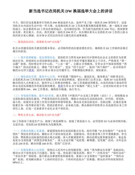 / 新当选书记在局机关DW换届选举大会上的讲话