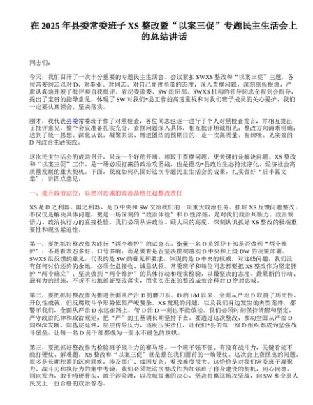 / 在2025年县委常委班子XS整改暨“以案三促”专题民主生活会上的总结讲话