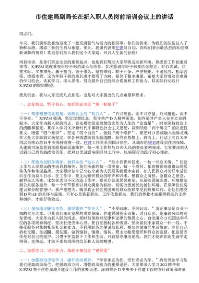 / 市住建局副局长在新入职人员岗前培训会议上的讲话
