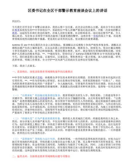 / 区委书记在全区干部警示教育座谈会议上的讲话